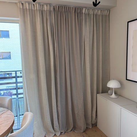 2 stk helt nye lingardiner i naturhvit 100% lin. Det er god tykkelse på dem slik at de henger pent og er mer lystette enn standard lingardiner.