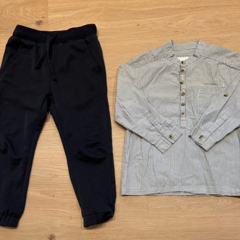 Et fint sett med rutete penbukse og hvit skjorte i størrelse 110, 5 år. Buksen er fra H&C og har regulerbar strikk i livet. Skjorten er fra HM.