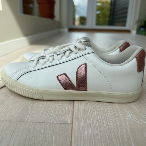 🧵 Semsket skinn med hvite detaljer og Veja-logo