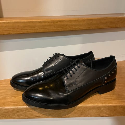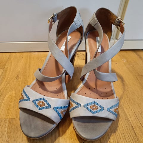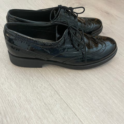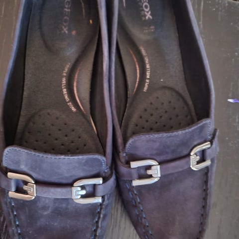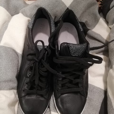 Geox pensko i størrelse 38, svart farge. Skoene har en lav hæl og er laget i skinnmateriale. Egnet for formelle og hverdagslige anledninger.