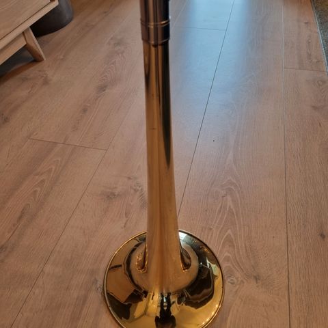 Instrumentet er tidligere eid av Geilo Musikklag. Ble ikke spilt på av noen, så jeg lånte det og spilte i Hallingdal Storband på 90-tallet, og senere i andre sammenhenger. Til slutt kjøpte jeg det og fikk bygget det om slik at det ble mulig å bruke begge ventilene med tommel og langfinger. Se bildene. Leveres med ny koffert med regntrekk, stativ, Denic Wick munnstykke 3AL, ventiloljer og sordin til basstrb. Jeg har montert på en støttehanske som gjør det mye letter å holde. Se bildene. Instrumentet er veldig behagelig å spille på. Det har noen skjønnhetsflekker på messingen. Sendes ikke i posten, men kan leveres over store deler av Østlandet og Trøndelag (eller hentes). Instrumentet står på Nesbyen i Hallingdal.