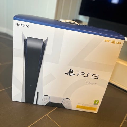Sony Playstation 5 spillkonsoll med standard design og hvit/svart farge. Passer til gaming og underholdning.