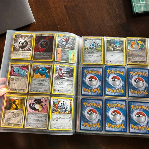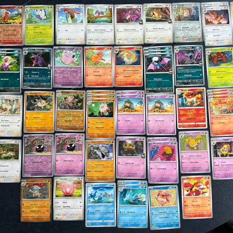 Selger bulker av pokemonkort. Kortene er hovedsaklig fra perioden 2021 - 2024.