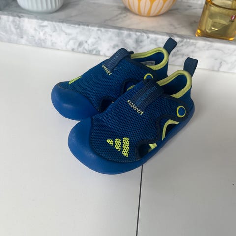 Adidas barnesandaler i størrelse 21, unisex. Sandalene er blå og laget i syntetisk materiale. De har borrelås for enkel justering og bruk.