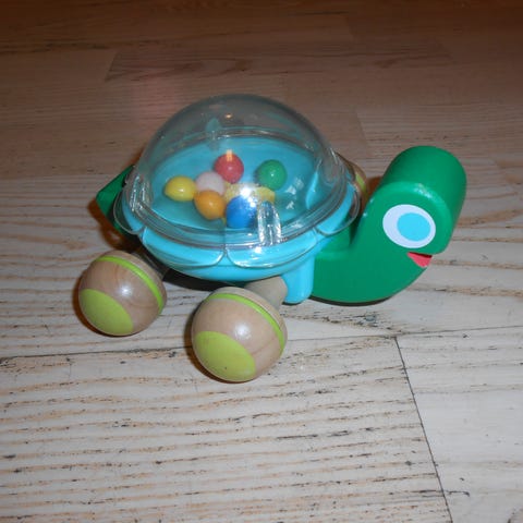 L4. TreKlosser 4 ulike som rasler og har «vindu» så man kan se kulene. 4cm. Litt bruksmerker, men veldig fine til små hender. 65kr