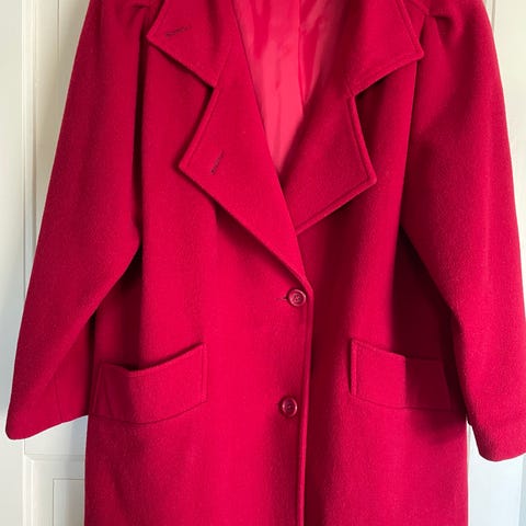 Måler 49cm rett over bryst. Hele jakken er 68 cm lang. Stoffet er 80 prosent ull. TILSVARER CA. En litt stor str. L FRA H&M.