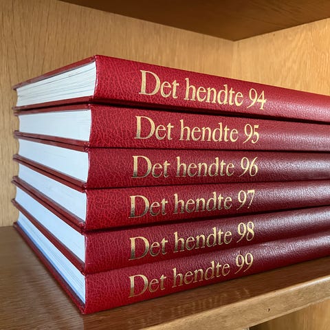Leksikon / oppslagsbøker «Det hendte» fra årene 1983, 1984, 1985, 1986 , 1987 og 1988.