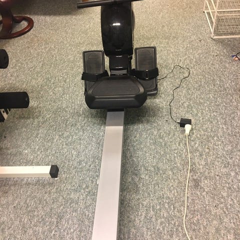 Tidtaker/timer fungerer, men distansemåleren fungerer ikke pga en ødelagt ledning på undersiden, se bilde. Dette påvirker ikke selve roingen, og motstand på båndet kan fint justeres med en vrider. Noen malingsflekker på dekselet.