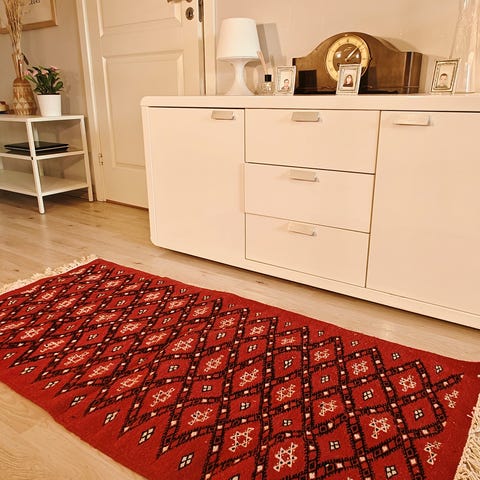 kelim, teppe, håndvevd, Klein, ullteppe, orientalsk teppe, afghan, afghansk, vintage teppe, løper, gangteppe, interiør, skandinavisk, lys, design, hygge, stemning,
