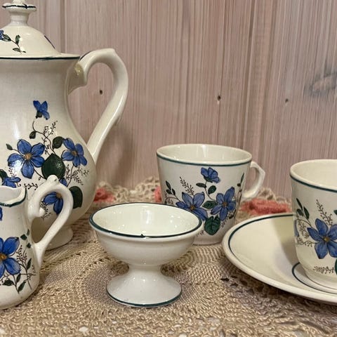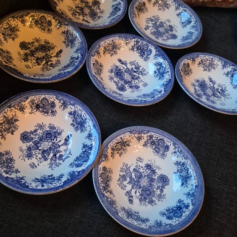 Deler til Blå Fasan-serviset fra Egersund Fayancefrabrikk.