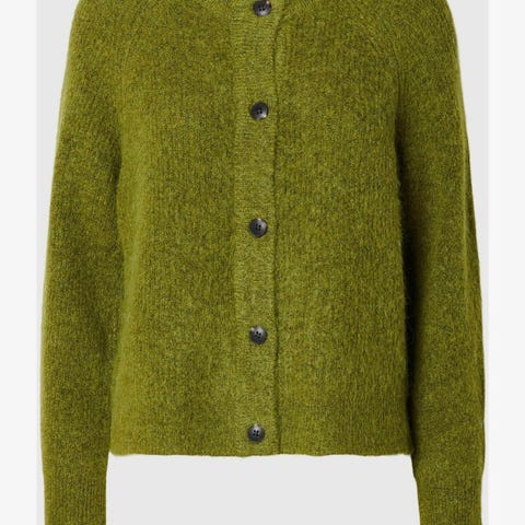 Lodden grønn ullgenser, 34%mohair og 34%ull. Strl M(36/38).