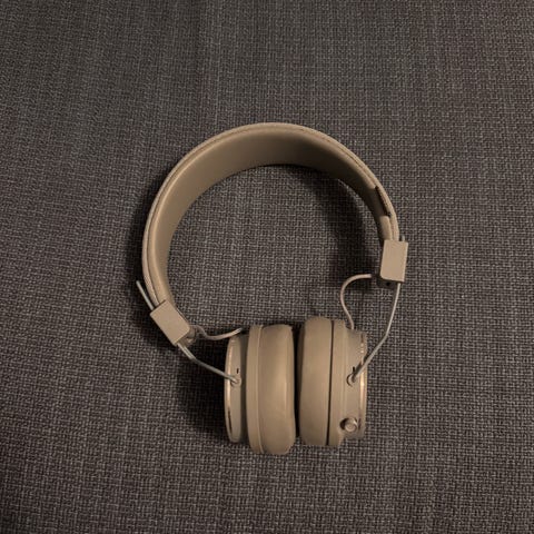 Noe slitasje på headsett. Spesielt i stoffet rundt ørene. Det preller lett stoff av når jeg nå sveipet over de med en lett vask.