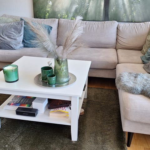 Selger den fine salongbord i ekte tre pga passer ikke i det ny leilighet. Veldig god kvalitet og i god stand.