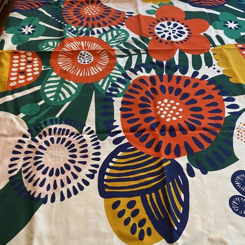 Over 3 meter tykk bomull stoff som ligner Marimekko. Samme tykkelse. Ubrukt - Har aldri vært vasket