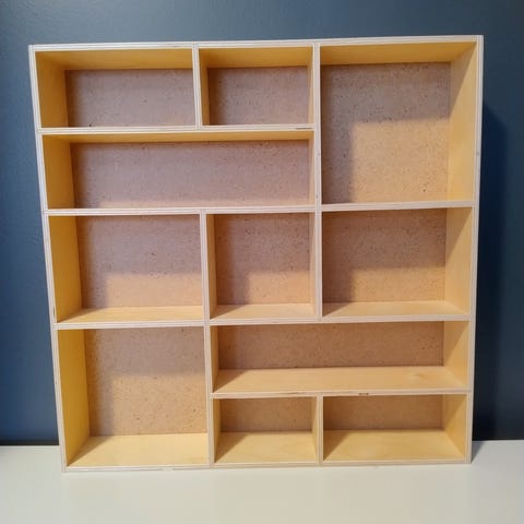 Hylle i form av et lite hus, svart, flere rom 🏠