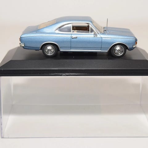 Opel Rekord 1968 ,modellbil av en stasjonsvogn i beige farge. Detaljert miniatyrmodell med fire dører og takstativ. Passer til samling eller utstilling.
