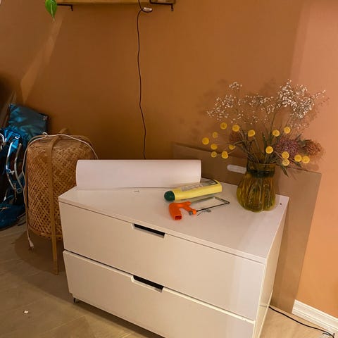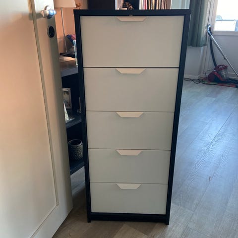 Lite bruksmerker på toppen av kommoden (høgre side). Men i svært god stand.