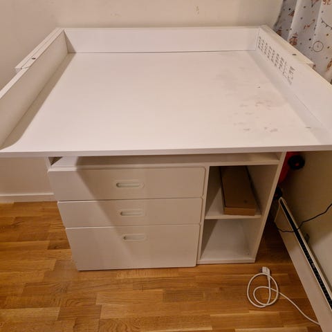 Angelcare bleiebøtte med tilhørende trekk. Produktet er designet for hygienisk oppbevaring av brukte bleier og bidrar til å redusere lukt. 3dje posering i bøtten er nesten nytt. Stelleunderlag gi vi bort gratis i tillegg hvis ønsket.