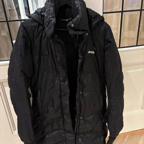 Sort Bergans parka i diun brukt 2 ganger så denne er god som ny