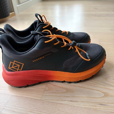 Ergobio Wetrax WP Blackfire tursko i størrelse 41. Skoene har vanntett membran, grovmønstret såle og elastisk snøring. Kun brukt et par ganger.
