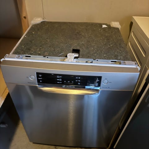 Bosch Annet oppvaskmaskin med hvitt frontpanel. Standard størrelse og design for innbygging eller frittstående bruk. Kontroller med knapper og dreiebryter på fronten.