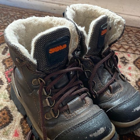 Superfit barnevintersko i størrelse 25, unisex. Skoene har en slitesterk såle med godt grep og borrelåslukking for enkel justering. Fargene inkluderer mørk blå og lys grønn med reflekterende detaljer for økt synlighet.