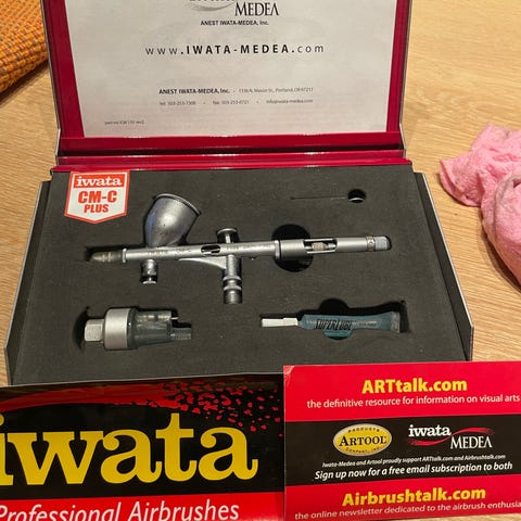 Airbrush delux sett med kompressor og maling. Kjøpt i 2022
