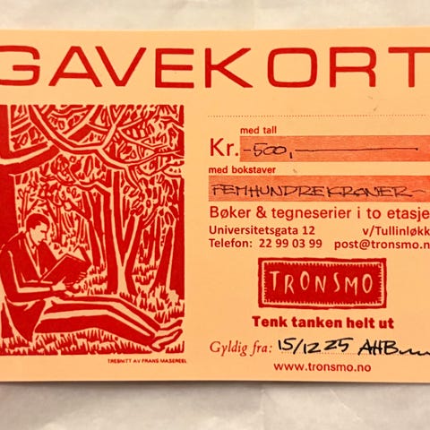 Lyst på et gavekort i Brumunddal nå før jul? Selges for 3400, verdi 4000