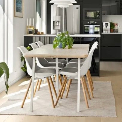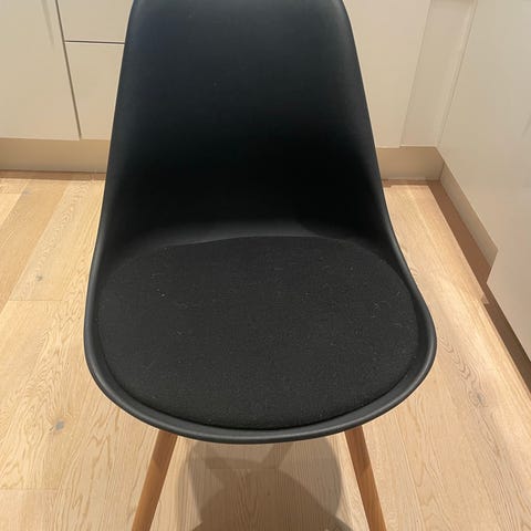 Stolen er i god stand og solid konstruksjon. Setet har noen flekker som ikke går bort med vanlig klut, men som muligens kan fjernes med grundig vask eller rens. Selges derfor samlet til redusert pris.