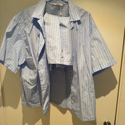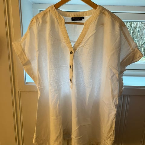 Materiale i rayon og lin, lett og behagelig kvalitet.