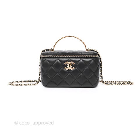 CHANEL 2025 Black Caviar Top Handle Flat Vanity on Chain, Gold Hardware.