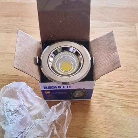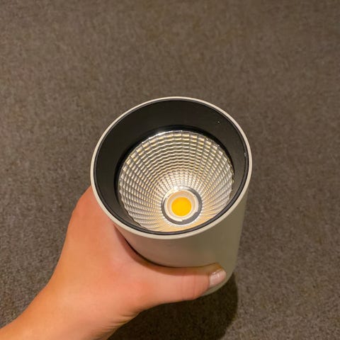 Spott med pære klar for montering på skinner.