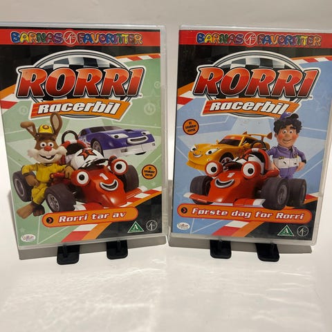 Rorri Racerbil DVD med tittelen Rorri tar av. Inneholder episoder fra serien med karakteren Rorri og hans eventyr. Passer for barn og fans av animasjonsserien.