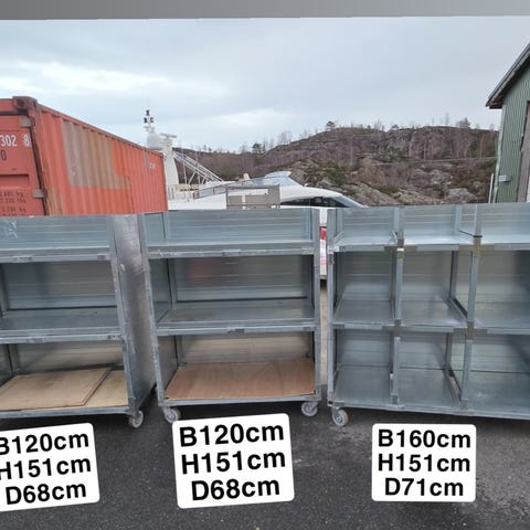 Metallreoler med fem hyller i grønn og svart farge. Egnet for oppbevaring av ulike gjenstander i garasje, lager eller hjem. Selger pr stk 500 kr