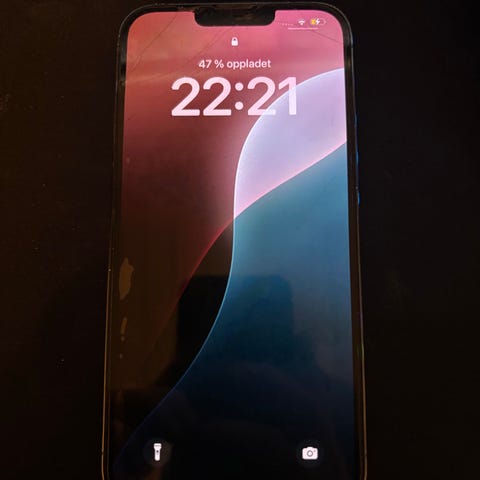Apple iPhone 13 Pro med 256 GB lagringskapasitet i svart farge. Brukt, men fullt fungerende. Batteriet ble byttet til et originalt Apple-batteri for ett år siden, og har fortsatt 96 % batteritilstand.