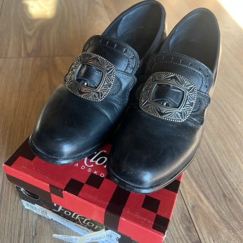 Pent brukte bunadsko som også kan bruk s til festdrakt selges. Noen små merker, se bilder. Mener de er fra Sparkjøp. Nypris 599,-