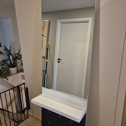 7stk Frisørspeil med svart solid base, høy og smal design, stålramme. 115x72cm. Kan fraktes til hele landet mot tillegg. Pris per speil.