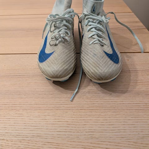Skoene er kjøpt nye for kr 1000 i oktober, og er kun brukt på et par utetreninger og på innendørs treninger i november og desember.