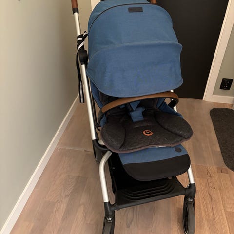 Selger en pent brukt Cybex Priam med både sittedel og liggedel. Vognen er kjøpt ny i 2021 og har kun vært brukt av ett barn. Alt fungerer som det skal. Det er noe normal slitasje og litt avflassing på håndtaket (se bilde), men ellers i veldig god stand.