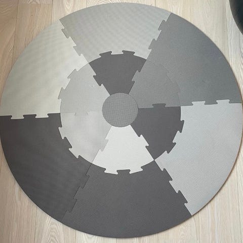 Sebra lekematte i rund form med flere farger. Laget av skumplastmateriale som gir en myk og trygg overflate for barn. Passer til bruk som lekematte innendørs, perfekt til å ha babygym på.