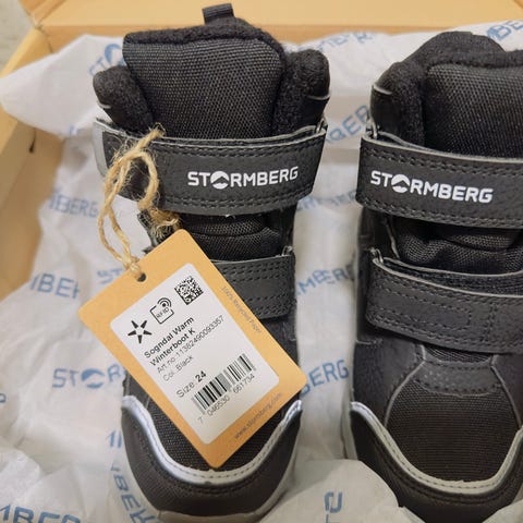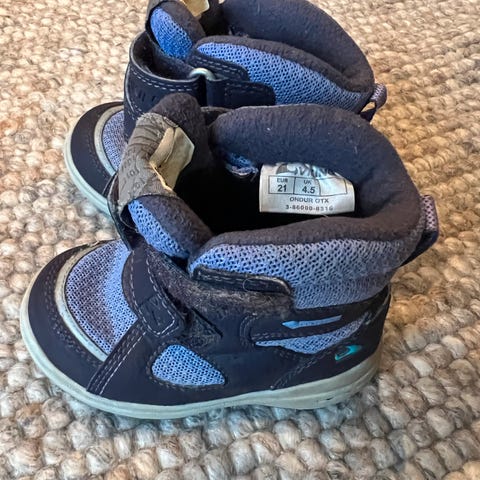 Superfit husky, str 24, goretex med ullfór. Nesten ingen slitasje. Svart og blå. Kr 300,-