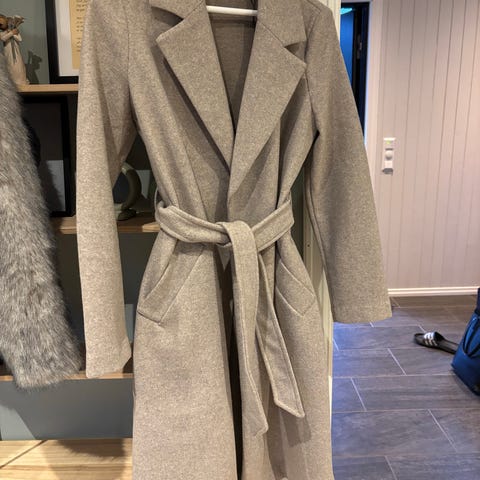 Vero Moda kåpe i størrelse XS, beige farge, laget av polyester. Designet for kvinner, med belte i livet og klassisk snitt. Passer til bruk som ytterplagg i kjøligere vær. ( Kåpen er vaska 1 gang og har dermed flanell, som syntes litt på ermene men ellers er den ganske ny og fin uten skader.)