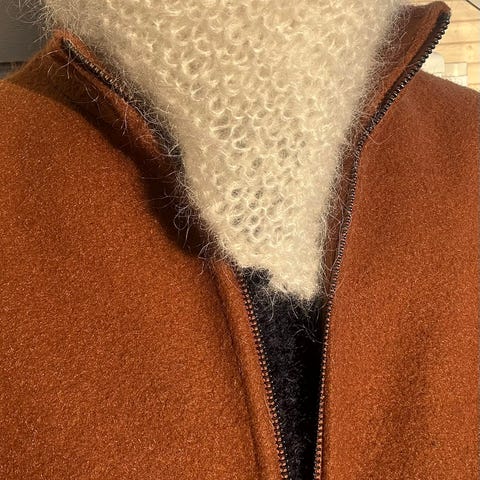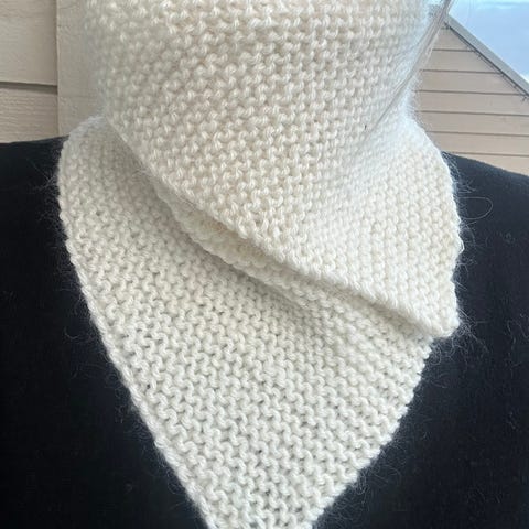 Hjemmestrikket hals i alpakka ull sammen med kidsilk ull. 2 tråd.