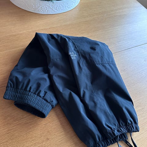 Lett og fin turbukse fra Neomondo. Lyseblå med mørkeblå felt på knær og bakende. Justerbar midje og borrelåser ved anklene. Smal passform. Pent brukt. Ingen rifter, verken på knærne eller bak. Noen misfarginger øverst og nederst på fremsiden av buksen (se bilde).