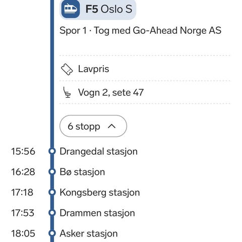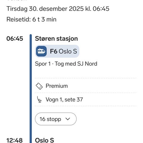Avgang søndag 21. desember 2025 kl. 14:28 fra Nationaltheatret stasjon.