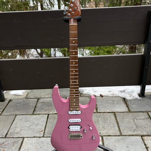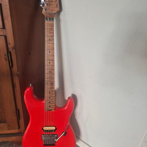 Er noen få merker på den, et ved volume knob også er det et der plekterbrett sitter skrudd. Men synes ikke vis man har det montert. E streng buzzer litt, skulle hatt en rask justering