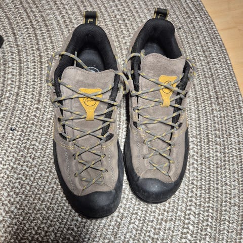 Selger et par gode sko til hverdags og friluftsliv, da de er litt smale for min fot. De er brukt i noen måneder, litt hverdagsbruk og litt bruk i skogen. De er brukt, men har lenge igjen før de er slitt.