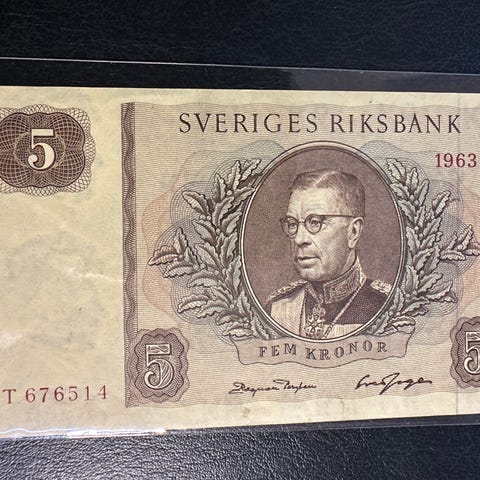 5 Kronor seddel Sverige , 1952 serie D - PEN SEDDEL (4164 BU )