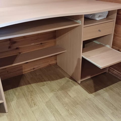Selger et enkelt og praktisk skrivebord i lys trefarge, passer fint til barn eller ungdom. Perfekt til lekser, tegning eller hobby.