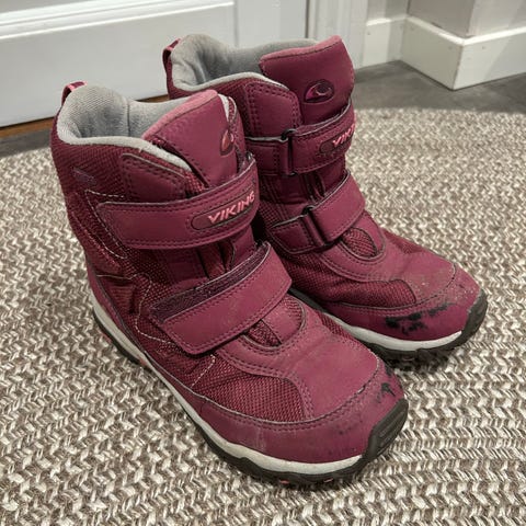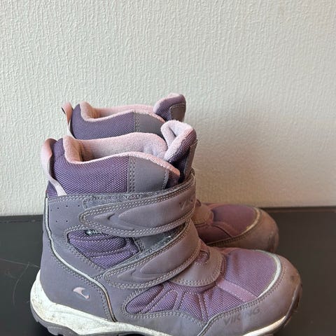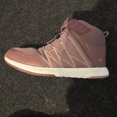 Viking barnesko unisex i størrelse 35. Skoene har borrelåslukking og er designet for barn. Fargen er lys med mørkere detaljer, og de har en robust såle for godt grep. Innvendig er skoene foret for komfort.